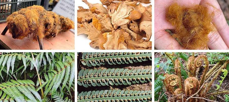 金毛狗脊(Cibotium barometz)为真蕨亚门、蚌壳蕨科(Dicksoniaceae)、金毛狗属(Cibotium)多年生高大树状蕨类植物。别名有:金毛狗蕨、金毛狗、金丝毛、金狗脊、黄狗头、金毛狮子、猴毛头、金毛猴、苟脊、百枝、狗青、扶盖、扶筋等。主要生长于海拔250-960米西北和东北坡向的山沟、溪边及山脚缓坡等林下阴湿酸性土壤中,喜温暖湿润的环境,畏严寒、忌烈日,喜明亮的散射光线。适宜生长温度为昼温20~35℃,夜温10~20℃,空气湿度60%~80%的环境气候条件。